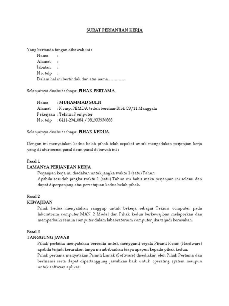 Bentuk kerjasama adalah pemberian pekerjaan di mana pihak pertama dengan ini memberikan pekerjaan kepada pihak kedua. Download contoh surat perjanjian kerjasama bagi hasil berbagai usaha. Majalah teen cantika dyah ayu. Punya mobil tapi jarang dipakai ? Surat perjanjian kerja pekerja lepas.
